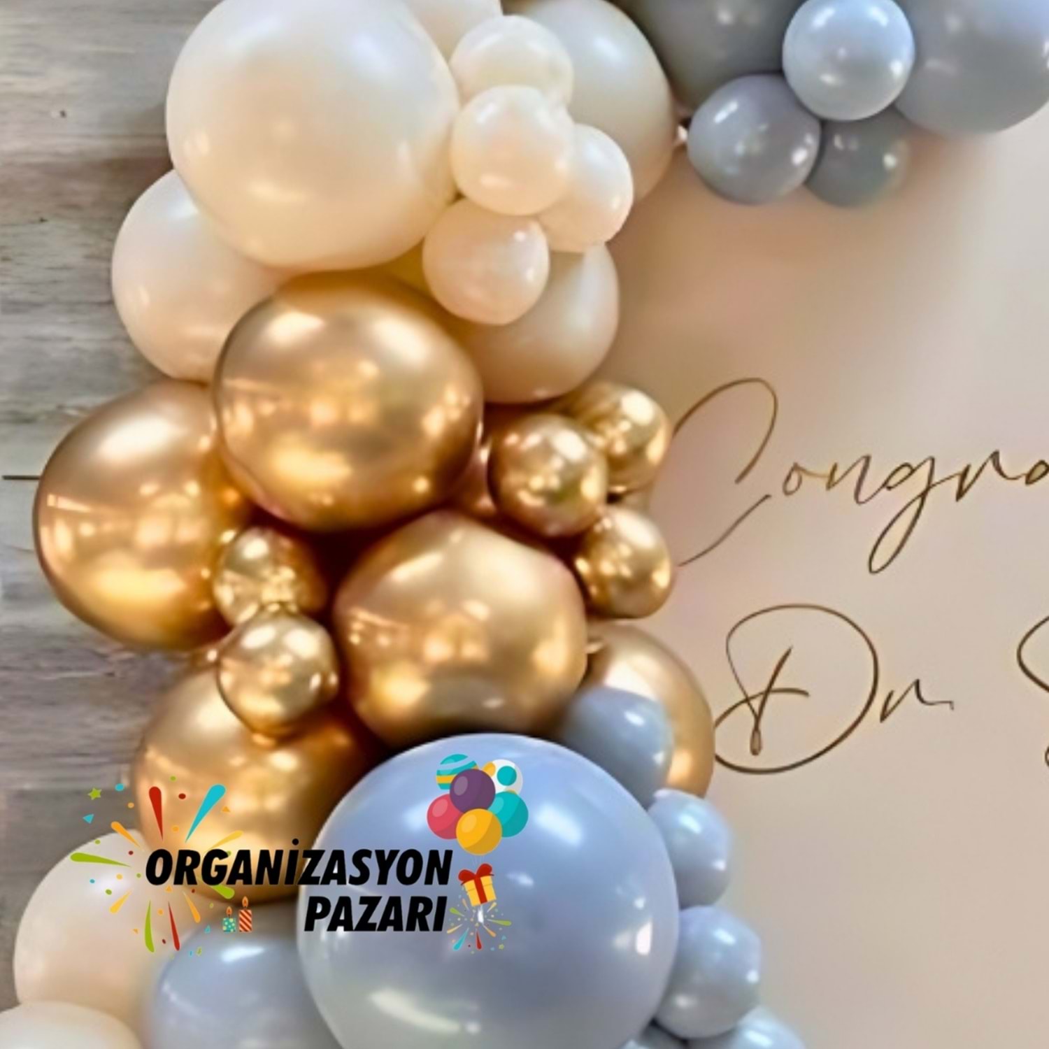 Balon seti fırtına mavisi - deniz kumu - krom gold 100 lü balon zinciri seti Doğum günü partinizi, 1 yaş doğum günü süsleri ya da hastane odası süsleme ihtiyaçlarınızı karşılayan bu eşsiz balon seti ile unutulmaz kılın. Balon zinciri ile muhteşem bir görsel şölen yaratın ve partinizin havasını değiştirecek bu şık setle fark yaratın!