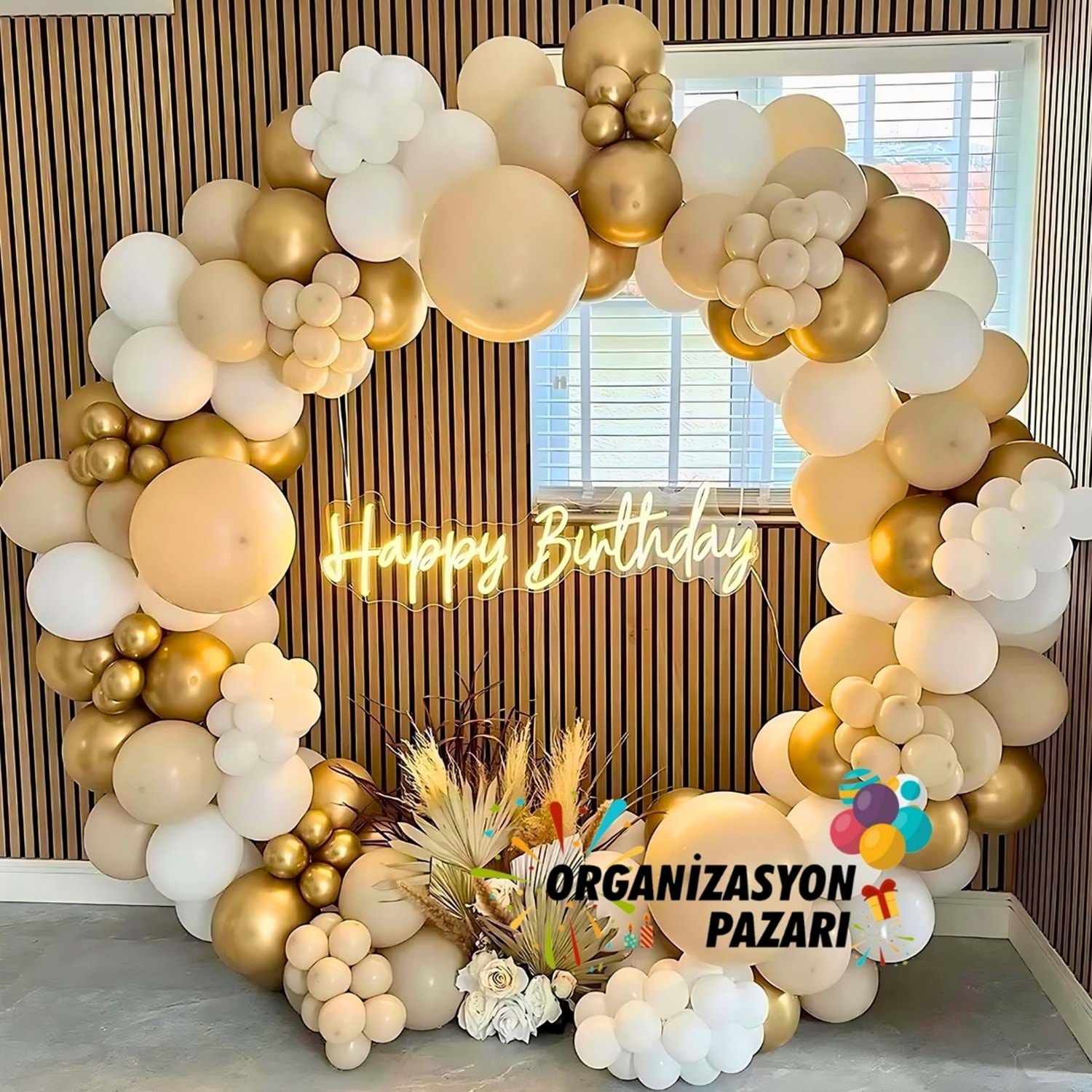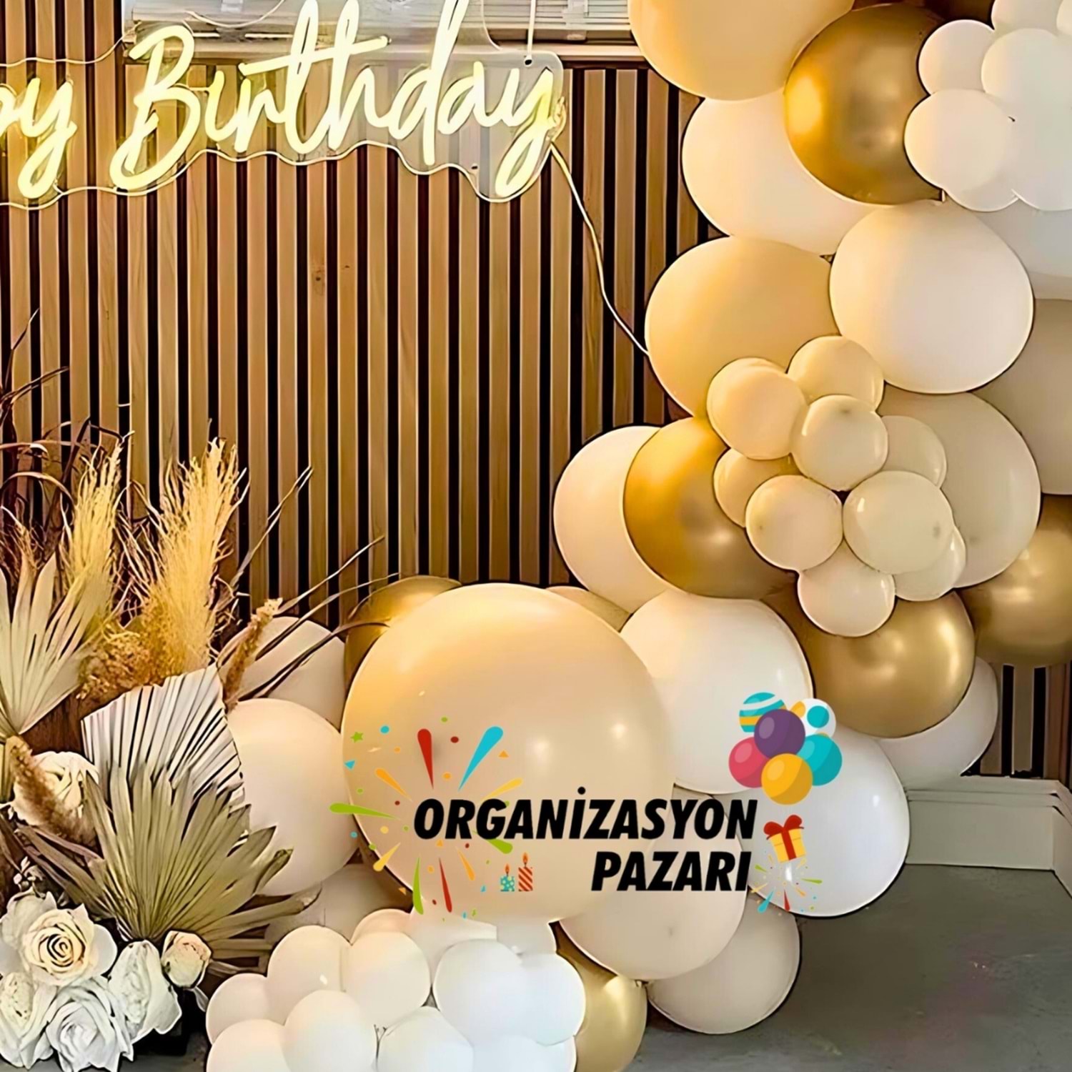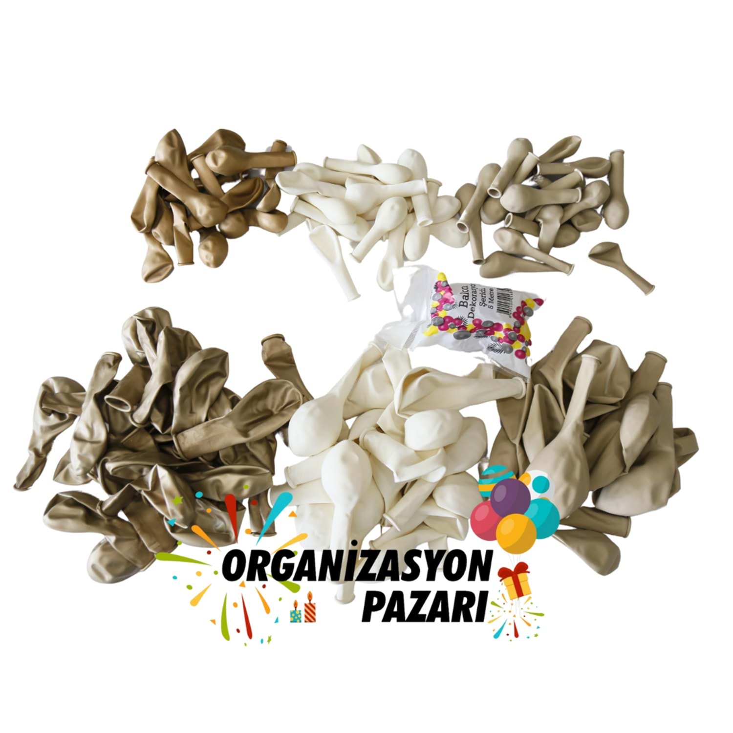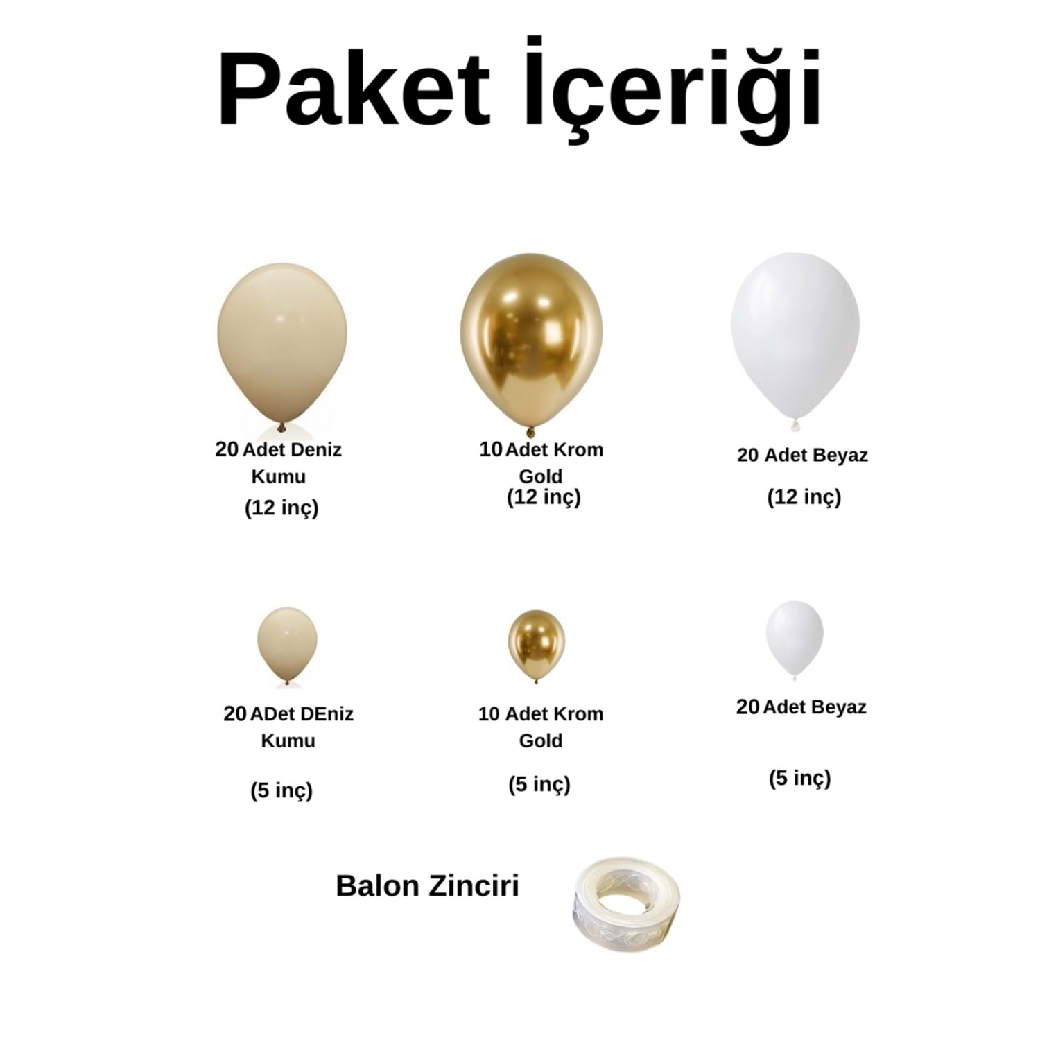 Balon seti krom gold - deniz kumu - beyaz 100 lü balon zinciri seti Doğum günü partinizi, 1 yaş doğum günü süsleri ya da hastane odası süsleme ihtiyaçlarınızı karşılayan bu eşsiz balon seti ile unutulmaz kılın. Balon zinciri ile muhteşem bir görsel şölen yaratın ve partinizin havasını değiştirecek bu şık setle fark yaratın!