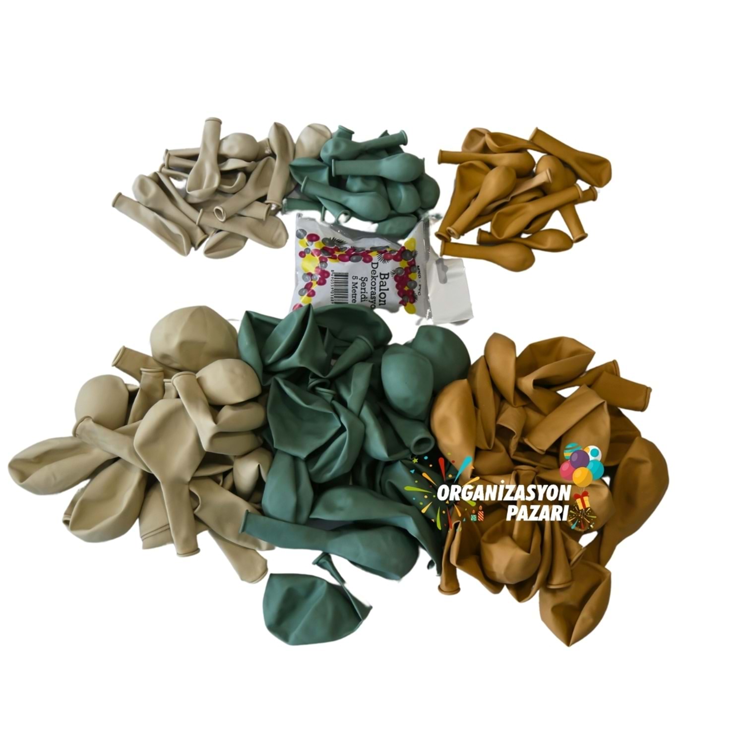 Balon seti kış yeşili - retro beyaz - sütlü kahve 60 lı balon zinciri seti Doğum günü partinizi, 1 yaş doğum günü süsleri ya da hastane odası süsleme ihtiyaçlarınızı karşılayan bu eşsiz balon seti ile unutulmaz kılın. Balon zinciri ile muhteşem bir görsel şölen yaratın ve partinizin havasını değiştirecek bu şık setle fark yaratın!